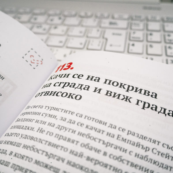 „203 предизвикателства за пътешественици“ е нещо като пътеводител на приключенеца. Пълна е с идеи и съвети и се чете като книга – игра. Може да я прелистите на един дъх, може и да отваряте по няколко предизвикателства дневно, планирайки следващата си дестинация. Началото на книгата е посветено на един тест за това какъв тип пътешественик сте. Лично мен резултата направо ме шокира защото се оказа направо 100% удар в десетката. Вярно е авторите успяха да познаят че съм организиран тип и обичам да съм подготвена добре за мястото което посещавам. Всъщност това не е тайна за никого, защото с Джъмбо обичаме да пишем за пътешествията си и да споделяме не само интересни, но и полезни неща. За това обаче винаги знаем предварително доста неща за града който ни предстои да видим.
