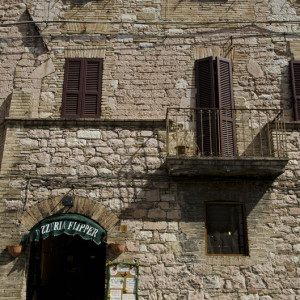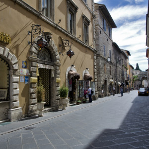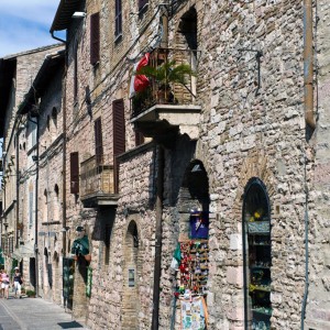 Тръгвайки надолу към „центъра“- слагам го в скоби защото център е силно казано с тези миниатюрни размери на всичко там, но както и да е – та по пътя надолу на всяка крачка почти има за какво да се спреш. Всяка малка вратичка е ателие или магазинче за джунджурии, а всяка стъклена витрина те кара да преглъщаш от вида на сладкишите. О да града ухае на вкусни сладки, може би едни от най-вкусните в цяла Италия. Мисля, че единствено вкуса на каноли Сицилиана, които опитах в Болоня, бих могла да сравня със сладките тук. Да не е споменавам малките работилнички за изделия от дърво, в които ставаш разноглед. Просто хората тук знаят как да те спечелят и да те накарат да се върнеш. Въпреки, че Асизи е ‘две стъпки’, и цял ден не ви стига. За съжаление времето тече с невероятна скорост, и докато стигнем църквата на хълма, вече трябваше да се връщаме обратно в автобуса. Определено ако имам възможност да се върна в Италия, то би било тук в Умбрия.