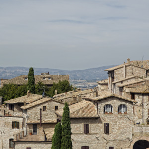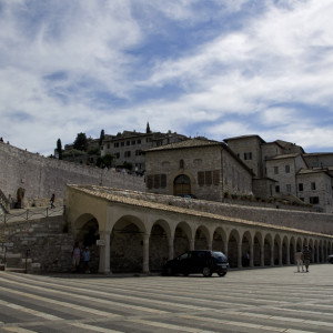 Когато започнахме да наближаваме града, на хълма постепенно започна все по-добре да се разкрива базиликата Св. Франциск, и именно от нея гледката към местността е невероятна. Като любител на архитектурата това ми направи най-силно впечатление. Асизи е осеян със стари но запазени църкви, за стила на сградите няма да споменавам. Всичко е толкова добре поддържано и .. не мога да намеря друга по-подходяща дума от чаровно…дори романтично.
