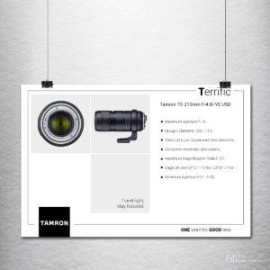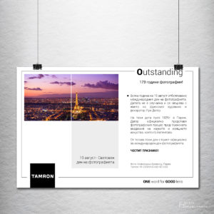 Идеен проект и адаптиране за: плакати, социални медии, рол банери, A4 брошура и др.Историята на марката: http://vip-digivision.bg/tamron/tamron-the-history/