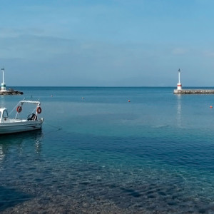 И .. изненада. Тасос ме посреща със слънце проблясващо през малкото облаци и кристално, изумрудено синьо море. Чак сама си завидях за времето. А курортните градчета – бедни на туристи, цари тишина и спокойствие.